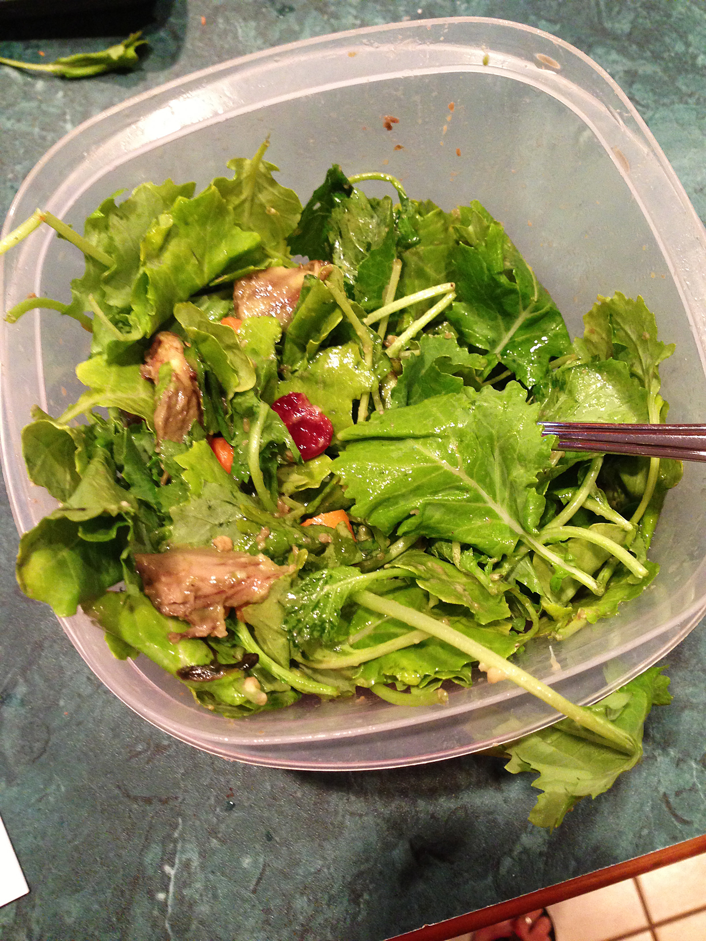 My first solid meal in five days: kale, avocado, carrots, and dried cherries. Nothing has ever tasted so good. Okay, that’s a lie. But it was awesome.