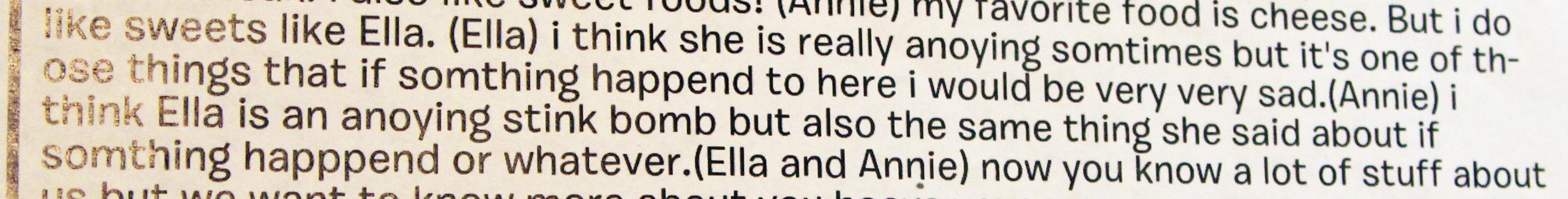 I don’t know what it was, but from the moment they laid eyes on each other, Annie and Phoofsy were smitten. Phoofsy had always loved Ella – there was no worry of that – but there was something special about her relationship with Annie. They lit up when they saw one another; where everyone else would be captivated by Ella’s stories and songs and dramatic reenactments, Phoofsy would go up to Annie and coo at her, instead. Annie’s biggest fan, we called her. It was pretty damn neat.